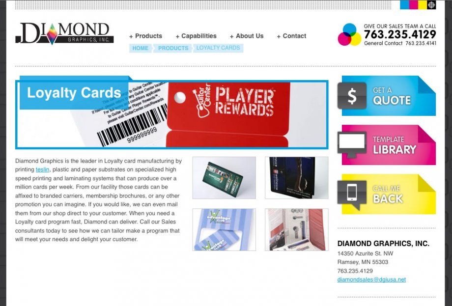 Diamond Graphics provides card printing products and services that include gift cards, loyalty cards, rewards cards, prepaid cards and membership cards. They additionly provide cutting, personalization, affixing and packaging services.