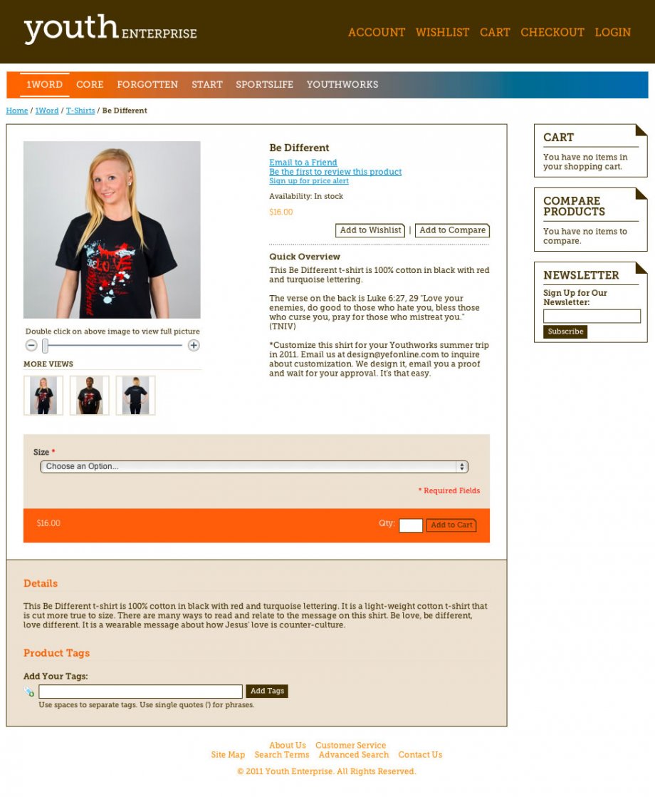 Youth Enterprise contacted Mipaca Interactive to migrate and manage their ecommerce store that was built on a propretary CMS a few years ago. Recently they wanted to make some updates to the functionality and look of the site. After researching and discussing several possible solutions, it was decided that the new site would be developed on the Magento Commerce CMS.